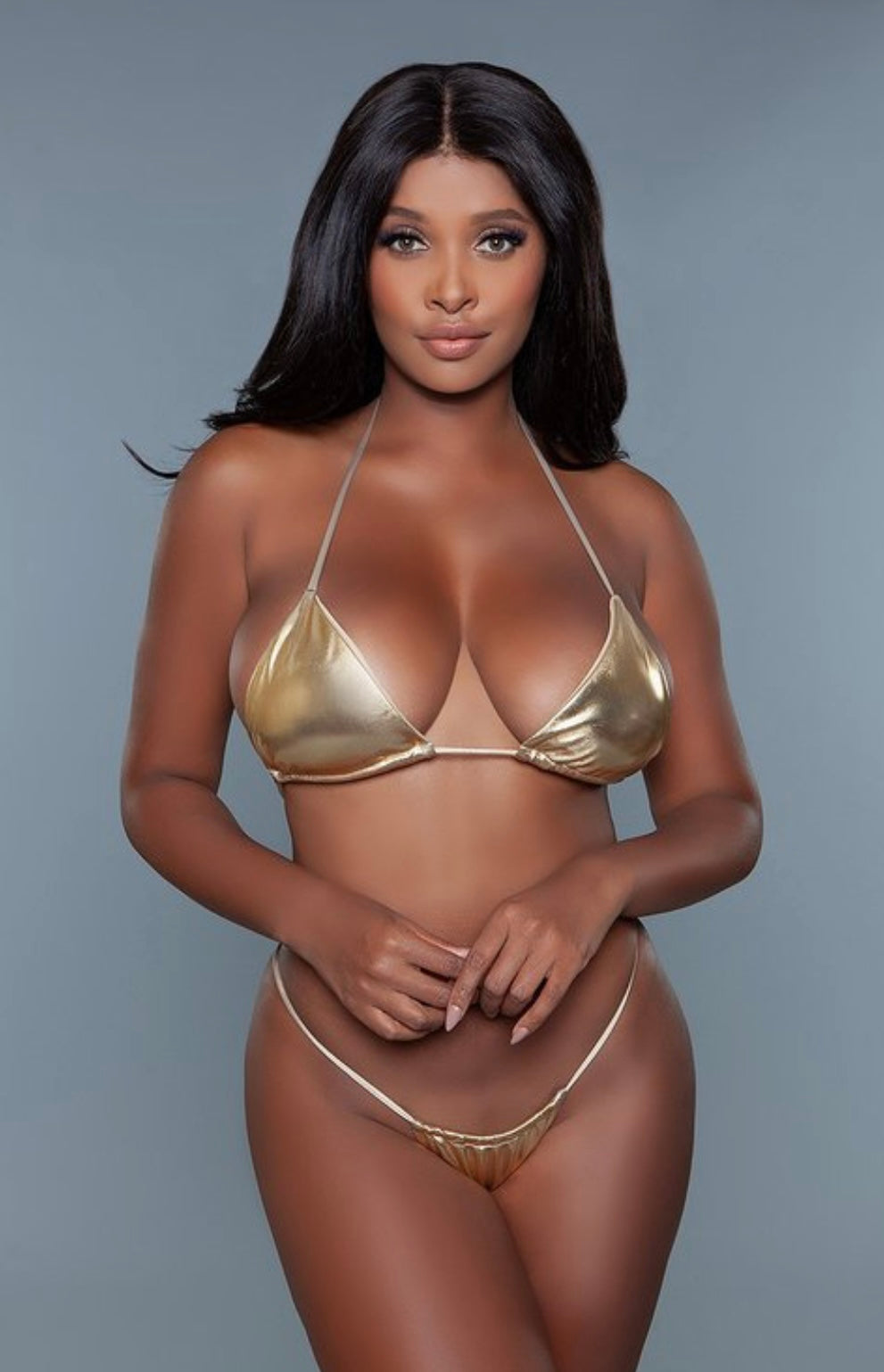 Glow like pure gold, BB Babe! This two-piece swimsuit brings that golden beach goddess energy every time you step out.